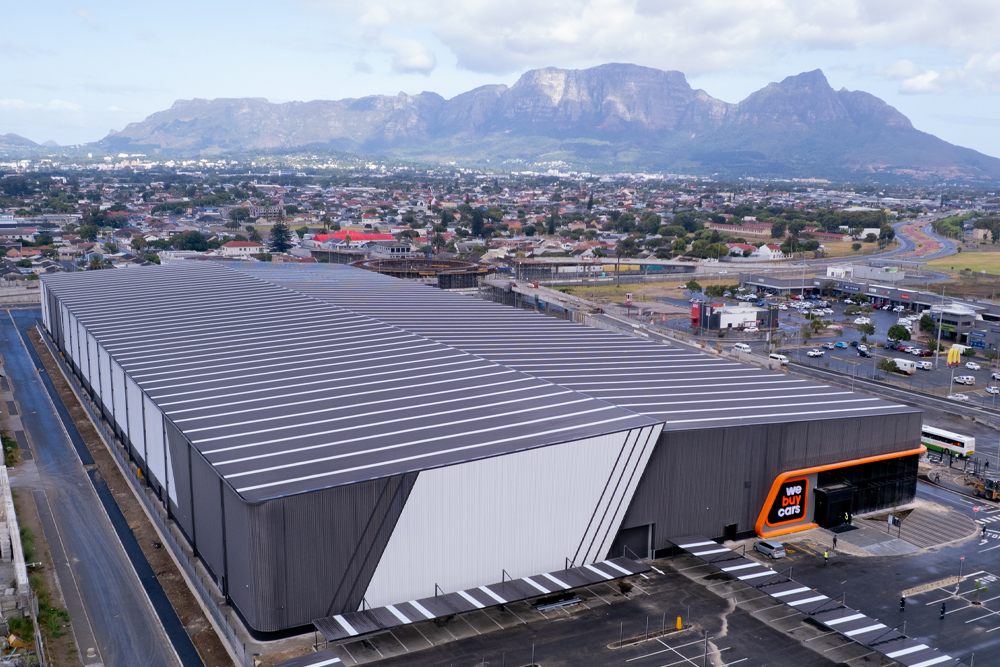 Enveloped in premium Colorbond® Steel Obsidian MATT and African White reinforces the building’s durability, low maintenance needs, and long-term performance, while also delivering a clean, modern aesthetic that aligns with the brand’s identity and commercial appeal.